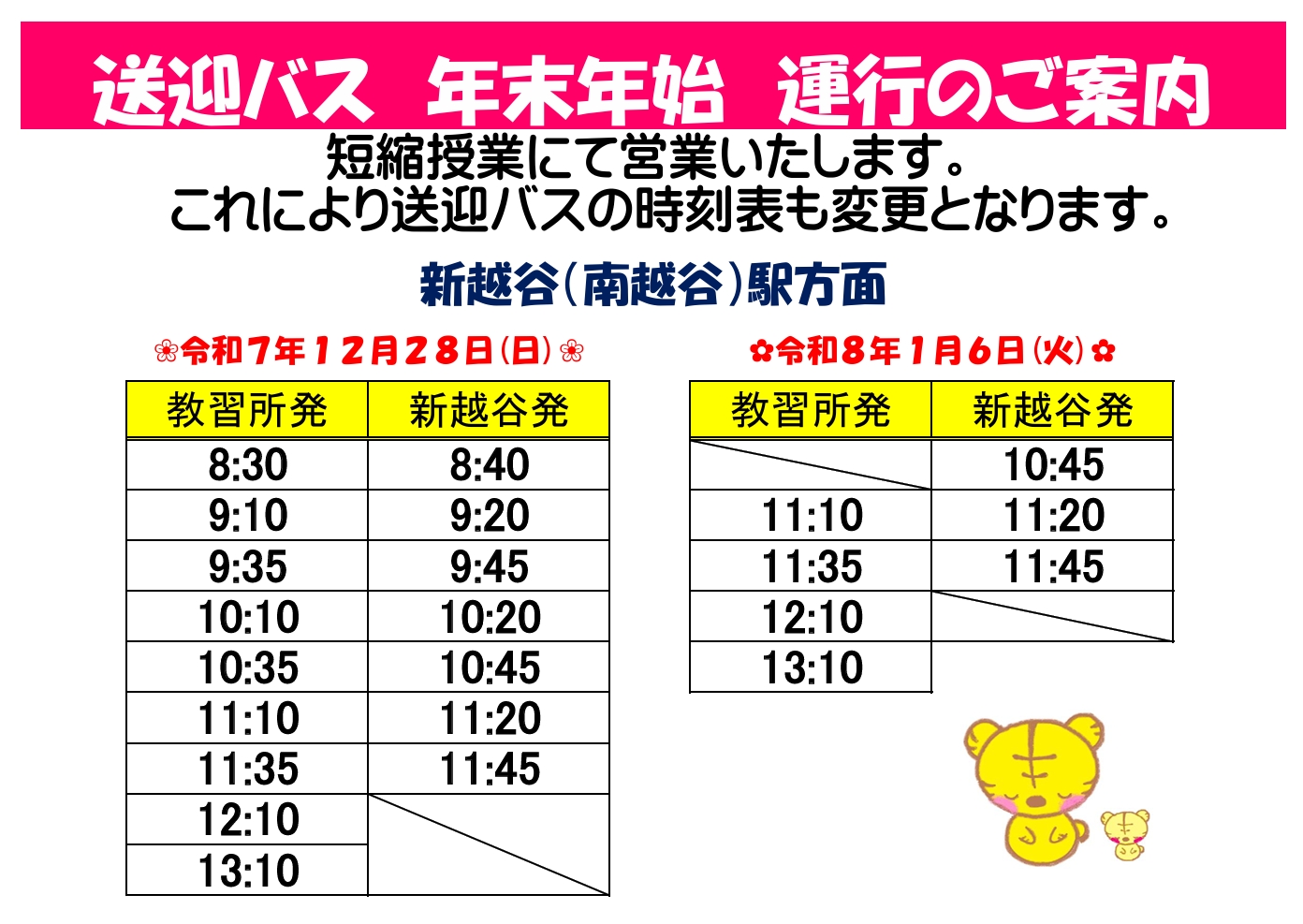 年末年始の送迎バスについて